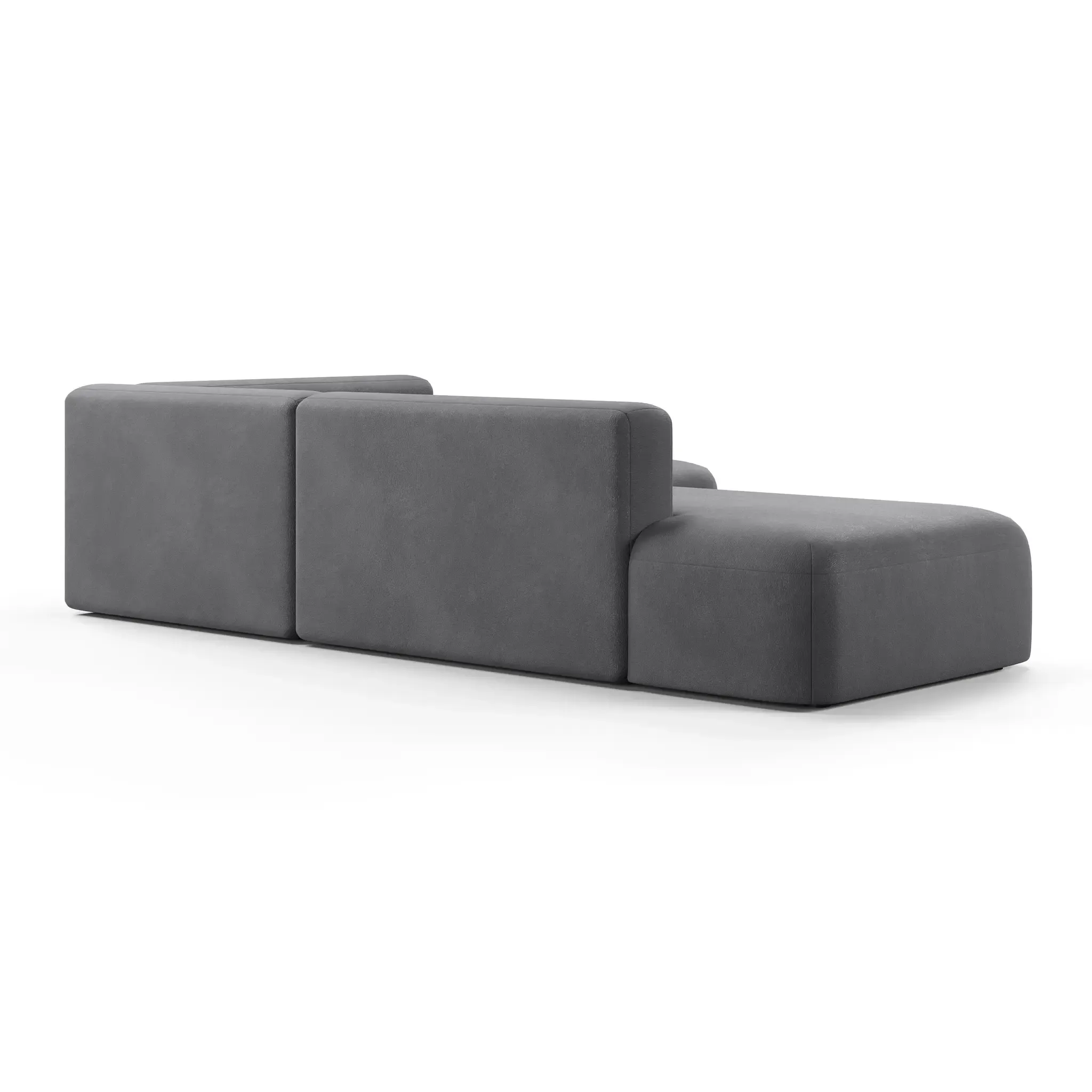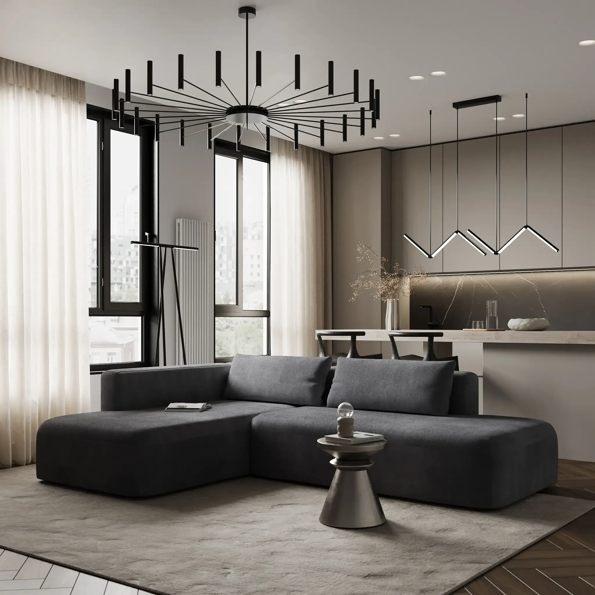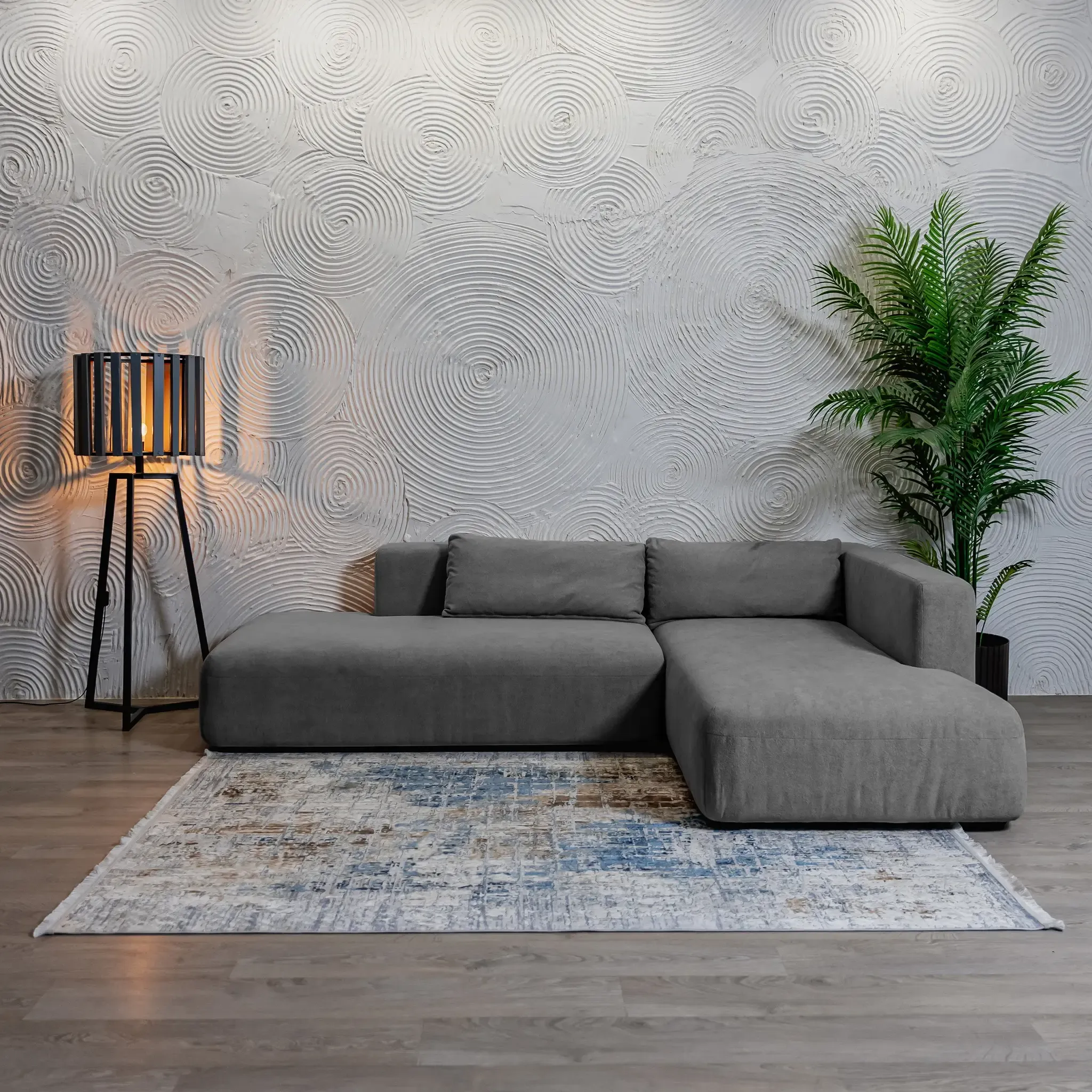 Дизайн дивана выполнен в современном стиле, который подойдет для интерьеров в стиле джапанди и минимализм. Округлые формы и широкие подлокотники создают ощущение уюта и комфорта. Вытянутые в горизонталь летящие силуэты дивана и асимметрия придают ему современное обличие.