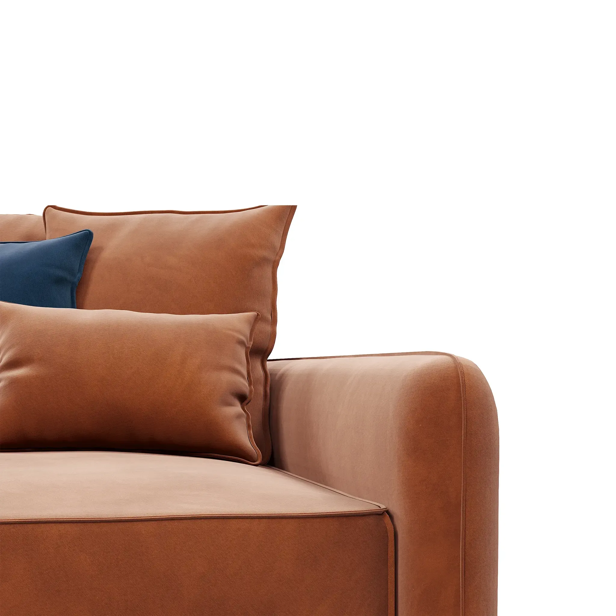 Обивка дивана - мягкий бархатистый премиальный велюр. Тонкая динамика узора обивки создаёт в пространстве ощущение лёгкости и движения. Технология Waterproof делает ткань устойчивой к влаге, и благодаря этому обивка долговечна и проста в уходе.