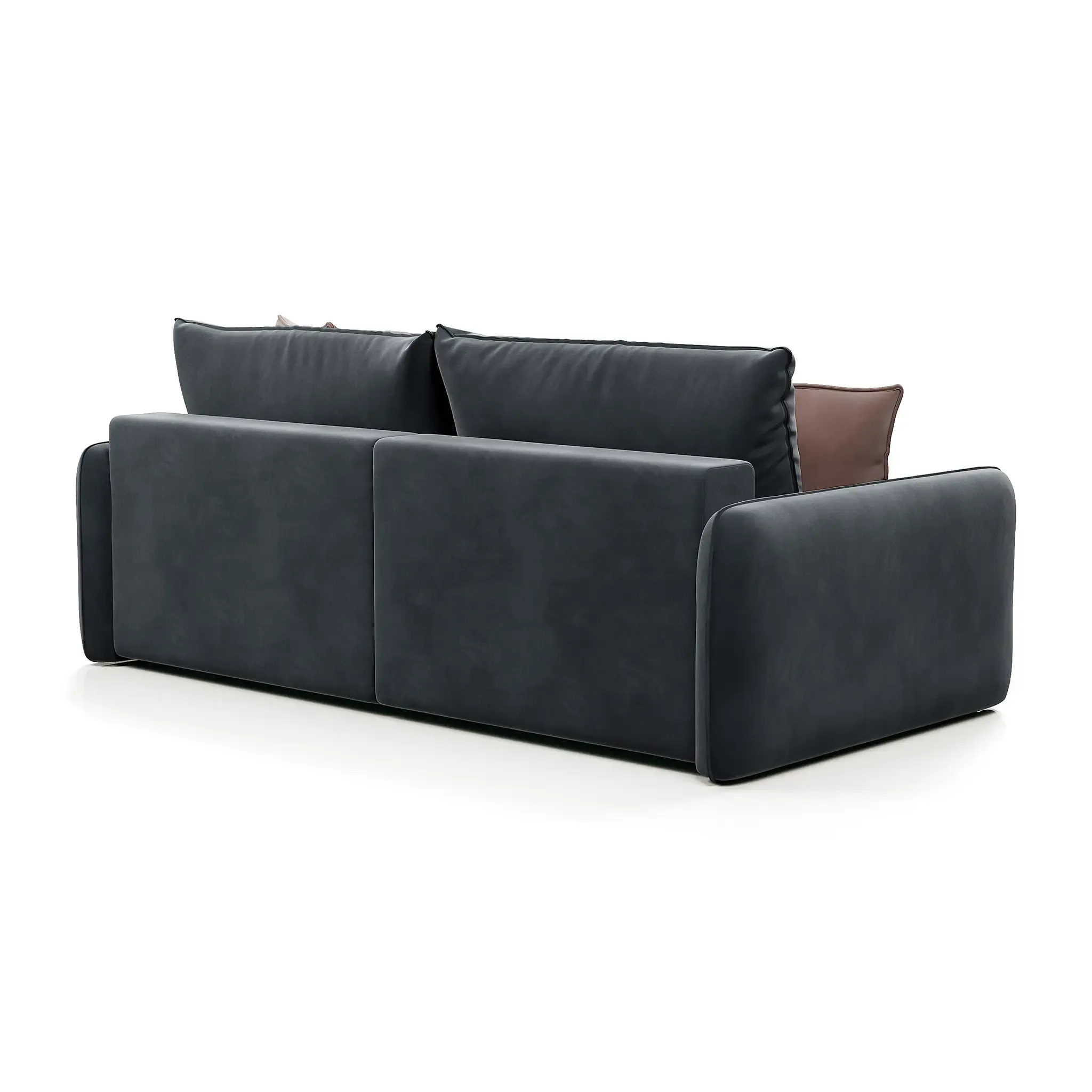 Обивка дивана - мягкий бархатистый премиальный велюр. Тонкая динамика узора обивки создаёт в пространстве ощущение лёгкости и движения.