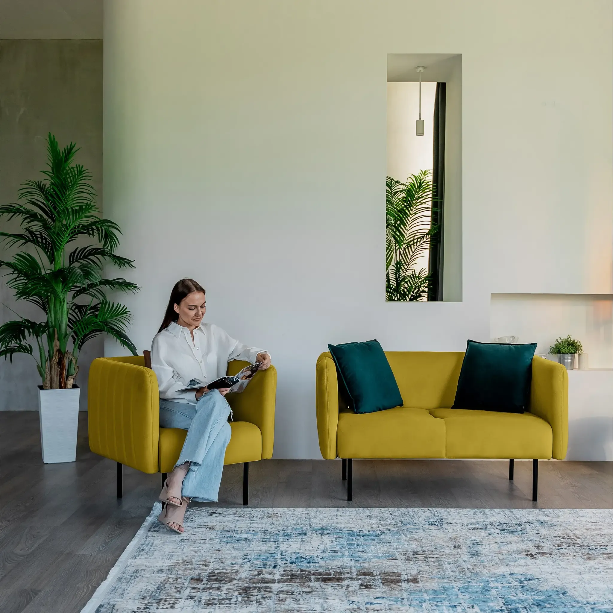 Ультрасовременное кресло РИО станет украшением дома, дачи, ресторана или офиса. Актуальный дизайн сочетается с удобством модели. Комфортное сиденье располагается на минималистичных ножках. Кресло смотрится легко и воздушно! Доступны яркие и нейтральные цвета обивки. ОБИВКА Обивка кресла - мягкий бархатистый велюр. Это тактильно приятная и очень практичная ткань.· Обивка имеет повышенный уровень износоустойчивости 60 000 циклов (по тесту Мартиндейла).· Ткань рекомендована для владельцев домашних животных.· Для велюра пригодна профессиональная химчистка, сухая чистка и чистка влажной губкой. ОСНОВАНИЕ Высокоплотный ППУ-матрас располагается на основании из пружинных змеек. Это гарантирует удобство и комфорт при отдыхе на кресле. КАРКАС В конструкции кресла используются сертифицированные материалы из натурального дерева и экологичная фанера. Каркас надежный, прочный, долговечный и безопасный! Характеристики:  Габариты (см): 70х70х75 Высота посадочного места (см): 45 Каркас: Фанера / ДСП Высота ножек (см): 22 Вес (кг): 17  Фабрика D1 является российским производителем мебели. Мы осуществляем полный производственный цикл всего представленного ассортимента. Все используемые материалы и комплектующие сертифицированы и соответствуют САНПиН. На всю нашу продукцию мы даём гарантию 18 месяцев.