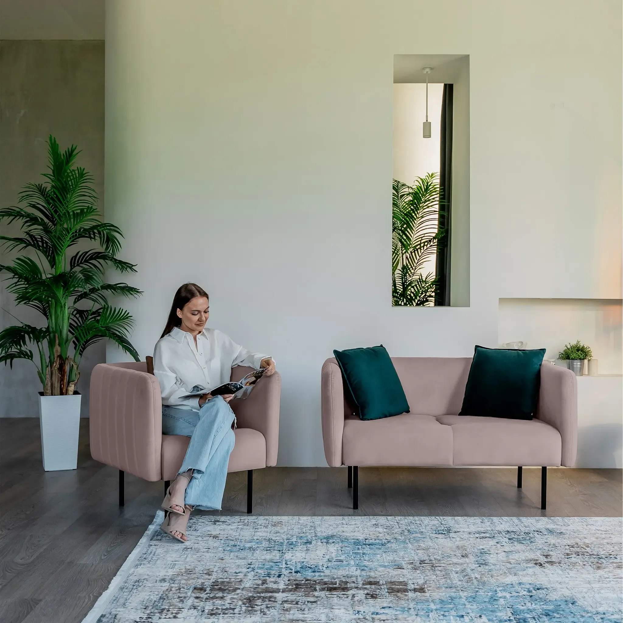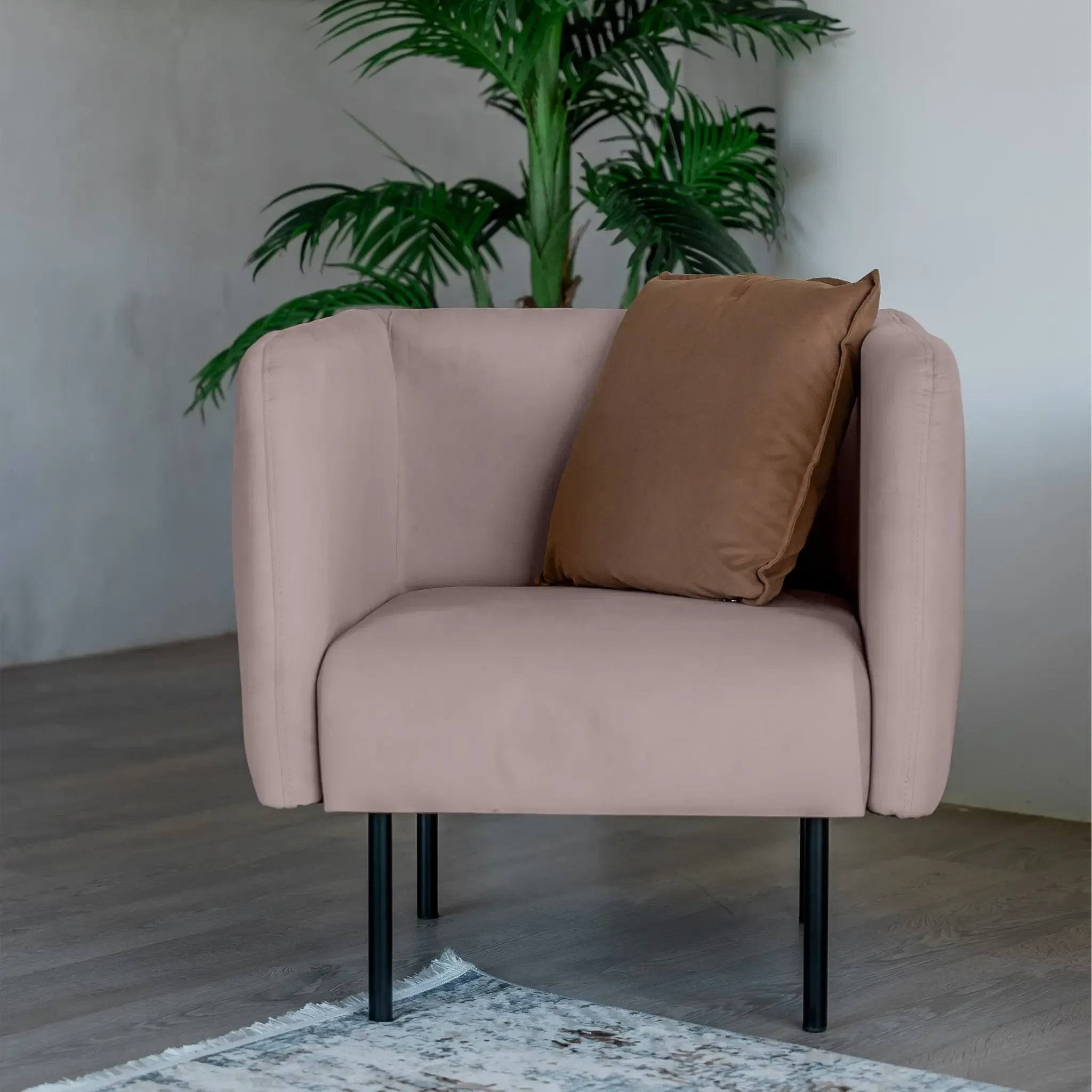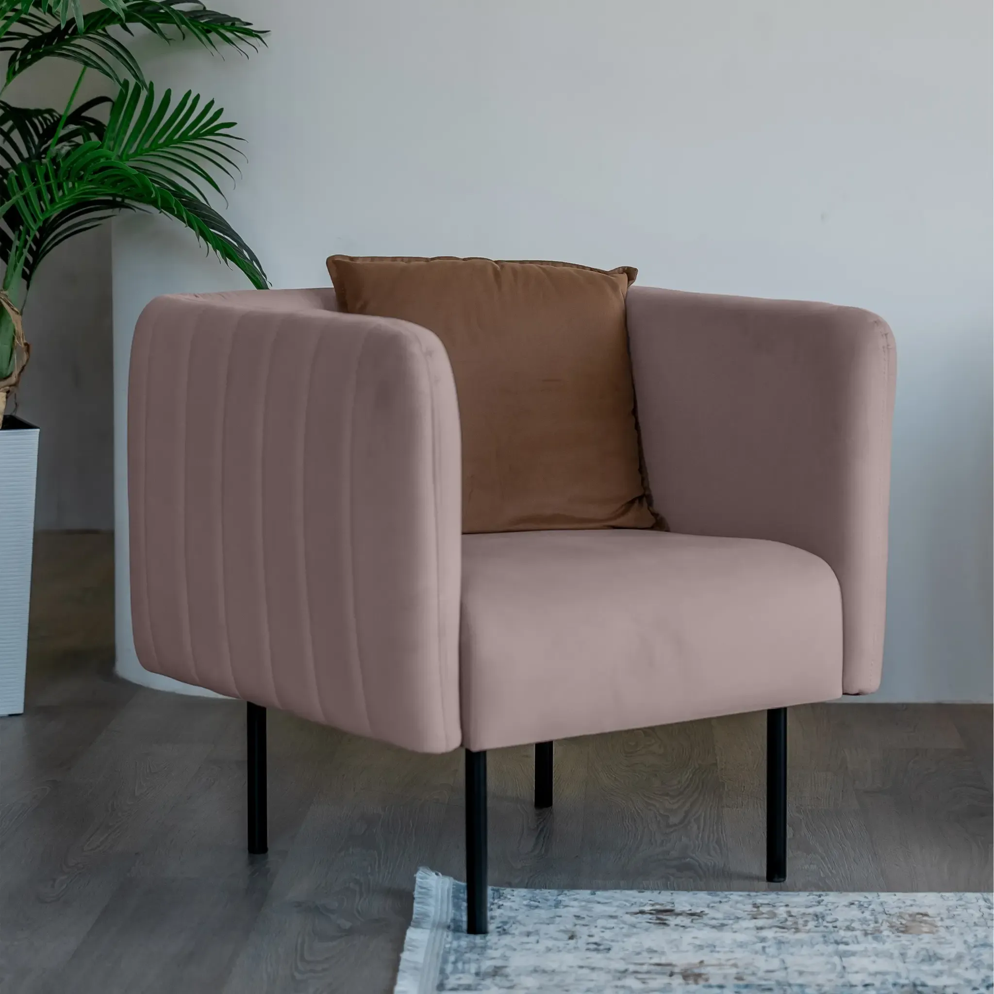 Ультрасовременное кресло РИО станет украшением дома, дачи, ресторана или офиса. Актуальный дизайн сочетается с удобством модели. Комфортное сиденье располагается на минималистичных ножках. Кресло смотрится легко и воздушно! Доступны яркие и нейтральные цвета обивки. ОБИВКА Обивка кресла - мягкий бархатистый велюр. Это тактильно приятная и очень практичная ткань.· Обивка имеет повышенный уровень износоустойчивости 60 000 циклов (по тесту Мартиндейла).· Ткань рекомендована для владельцев домашних животных.· Для велюра пригодна профессиональная химчистка, сухая чистка и чистка влажной губкой. ОСНОВАНИЕ Высокоплотный ППУ-матрас располагается на основании из пружинных змеек. Это гарантирует удобство и комфорт при отдыхе на кресле. КАРКАС В конструкции кресла используются сертифицированные материалы из натурального дерева и экологичная фанера. Каркас надежный, прочный, долговечный и безопасный! Характеристики:  Габариты (см): 70х70х75 Высота посадочного места (см): 45 Каркас: Фанера / ДСП Высота ножек (см): 22 Вес (кг): 17  Фабрика D1 является российским производителем мебели. Мы осуществляем полный производственный цикл всего представленного ассортимента. Все используемые материалы и комплектующие сертифицированы и соответствуют САНПиН. На всю нашу продукцию мы даём гарантию 18 месяцев.