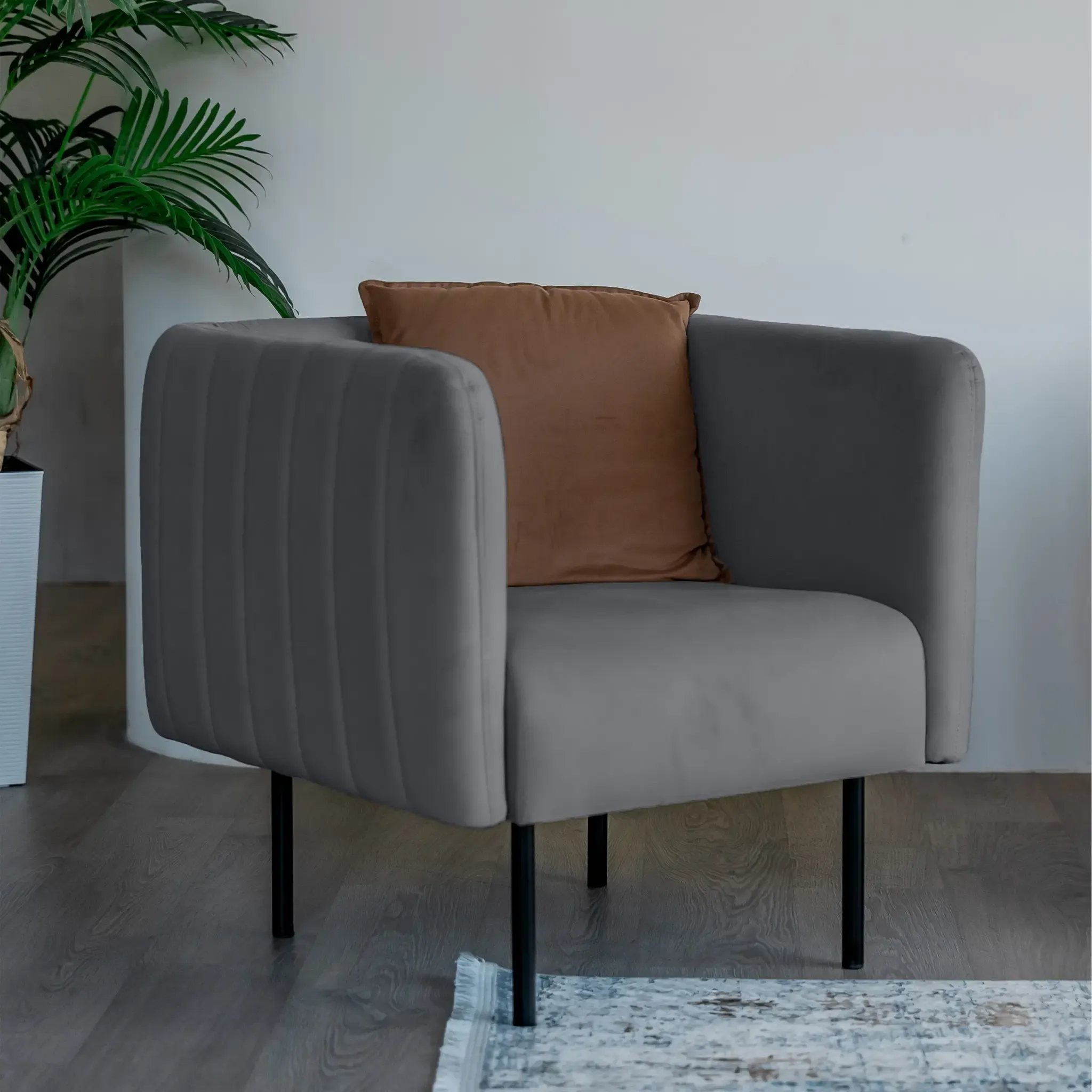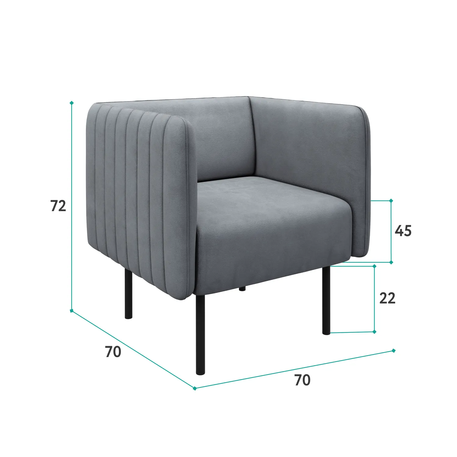 Ультрасовременное кресло РИО станет украшением дома, дачи, ресторана или офиса. Актуальный дизайн сочетается с удобством модели. Комфортное сиденье располагается на минималистичных ножках. Кресло смотрится легко и воздушно! Доступны яркие и нейтральные цвета обивки. ОБИВКА Обивка кресла - мягкий бархатистый велюр. Это тактильно приятная и очень практичная ткань.· Обивка имеет повышенный уровень износоустойчивости 60 000 циклов (по тесту Мартиндейла).· Ткань рекомендована для владельцев домашних животных.· Для велюра пригодна профессиональная химчистка, сухая чистка и чистка влажной губкой. ОСНОВАНИЕ Высокоплотный ППУ-матрас располагается на основании из пружинных змеек. Это гарантирует удобство и комфорт при отдыхе на кресле. КАРКАС В конструкции кресла используются сертифицированные материалы из натурального дерева и экологичная фанера. Каркас надежный, прочный, долговечный и безопасный! Характеристики:  Габариты (см): 70х70х75 Высота посадочного места (см): 45 Каркас: Фанера / ДСП Высота ножек (см): 22 Вес (кг): 17  Фабрика D1 является российским производителем мебели. Мы осуществляем полный производственный цикл всего представленного ассортимента. Все используемые материалы и комплектующие сертифицированы и соответствуют САНПиН. На всю нашу продукцию мы даём гарантию 18 месяцев.