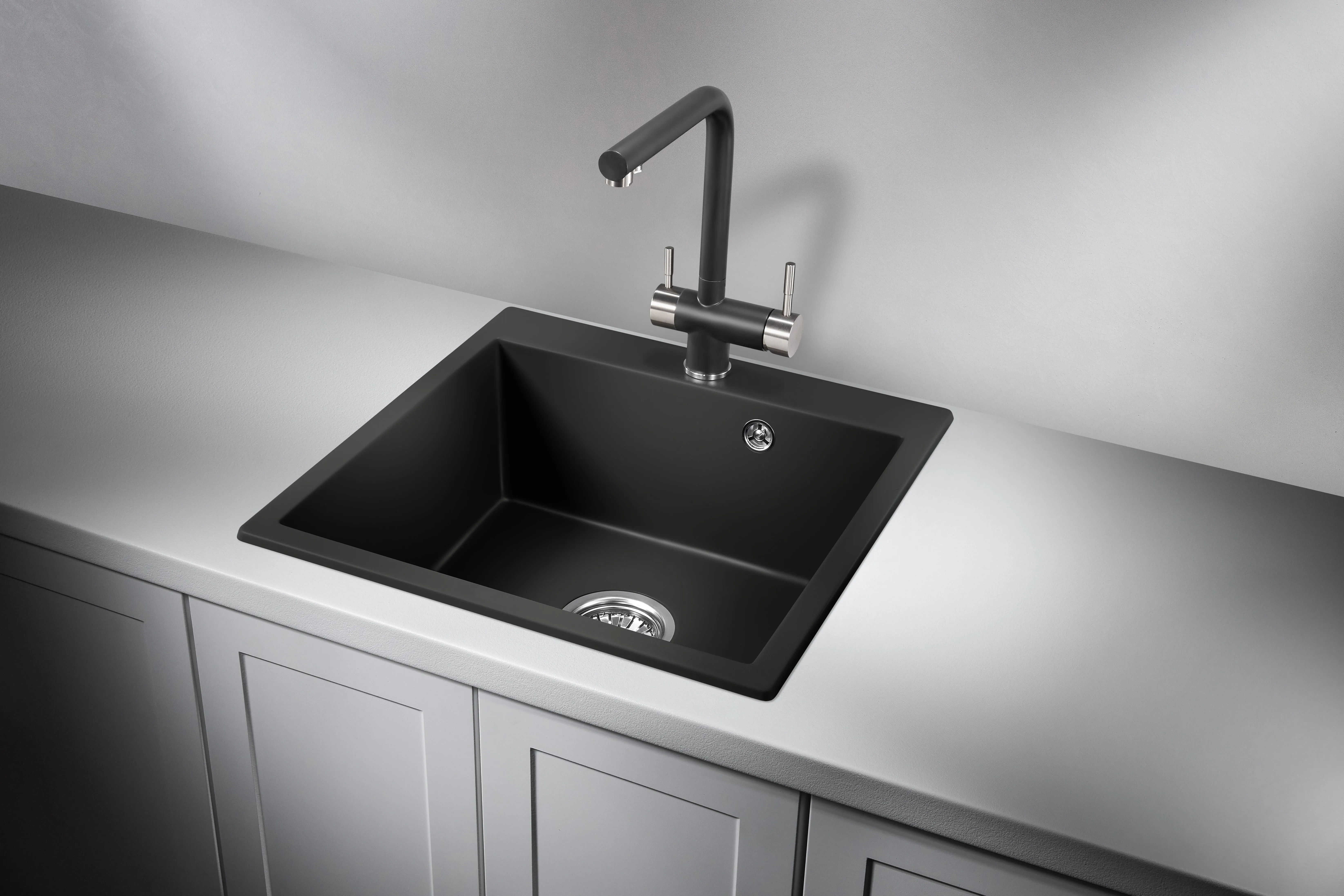 4651, ШВАРЦ (чёрный металлик), кухонная мойка, кварц