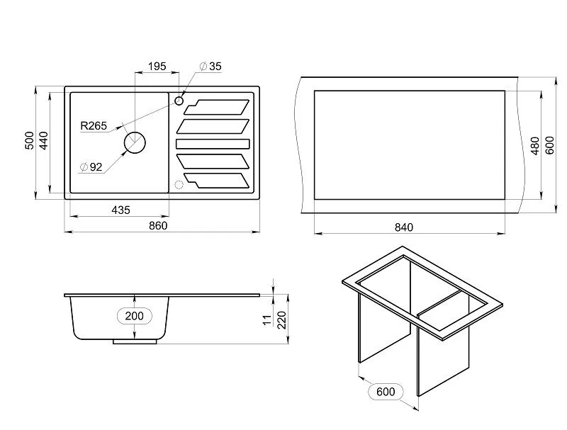 6002, БАЗАЛЬТ, кухонная мойка, кварц