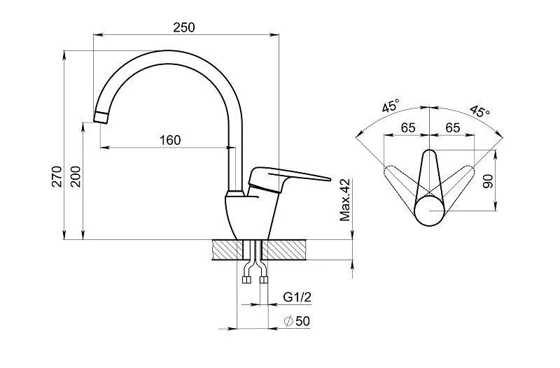 2168, ХРОМ, СМЕСИТЕЛЬ КУХОННЫЙ