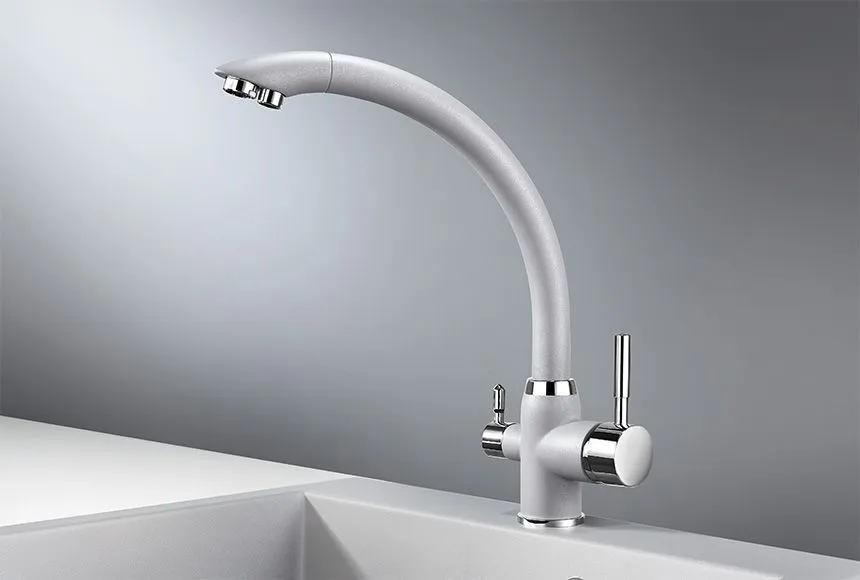 Смеситель для кухонной мойки Granula 2167 изготовлен из высококачественного материала. Латунный корпус обеспечивает длительный срок службы. При этом высокий излив позволяет мыть как мелкую, так и крупногабаритную посуду. Двухрычажная модель смесителя Granula 2167 выполнена с краном для питьевой воды. Фильтрованная вода подается по отдельной трубке и не смешивается с водопроводной водой. Покупателям предлагаются различные типы смесителей, окрашенные в тон моек Granula и StandART. Все модели смесителей для кухонных моек во всех цветах Вы можете посмотреть и приобрести на нашем сайте или в наших представительствах в регионах. Если у Вас остались вопросы, обращайтесь к нашим консультантам.