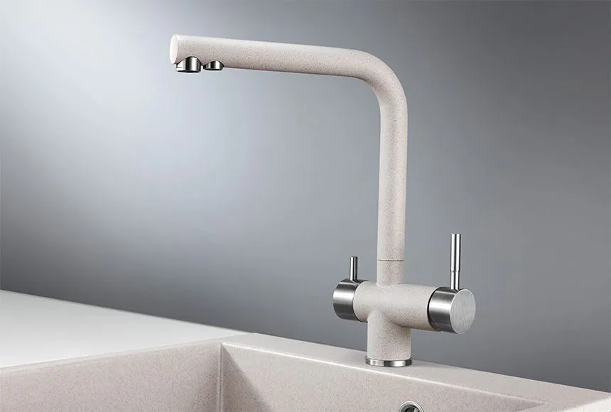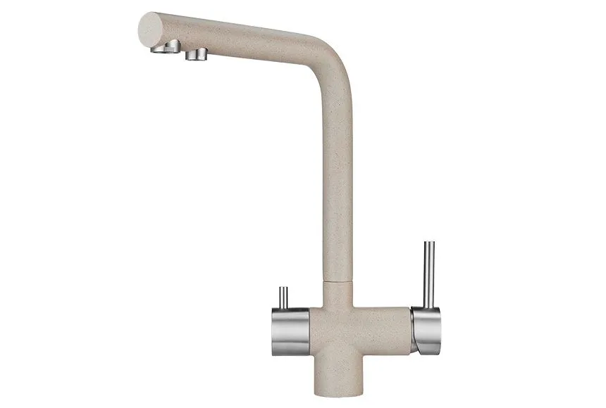 Смеситель для кухонной мойки Granula 2305 изготовлен из высококачественного материала. Корпус из нержавеющей стали обеспечивает длительный срок службы. При этом высокий излив позволяет мыть как мелкую, так и крупногабаритную посуду. Двухрычажная модель смесителя Granula 2305 выполнена с краном для питьевой воды. Фильтрованная вода подается по отдельной трубке и не смешивается с водопроводной водой. Покупателям предлагаются различные типы смесителей, окрашенные в тон моек Granula и StandART. Все модели смесителей для кухонных моек во всех цветах Вы можете посмотреть и приобрести на нашем сайте или в наших представительствах в регионах.Если у Вас остались вопросы, обращайтесь к нашим консультантам.