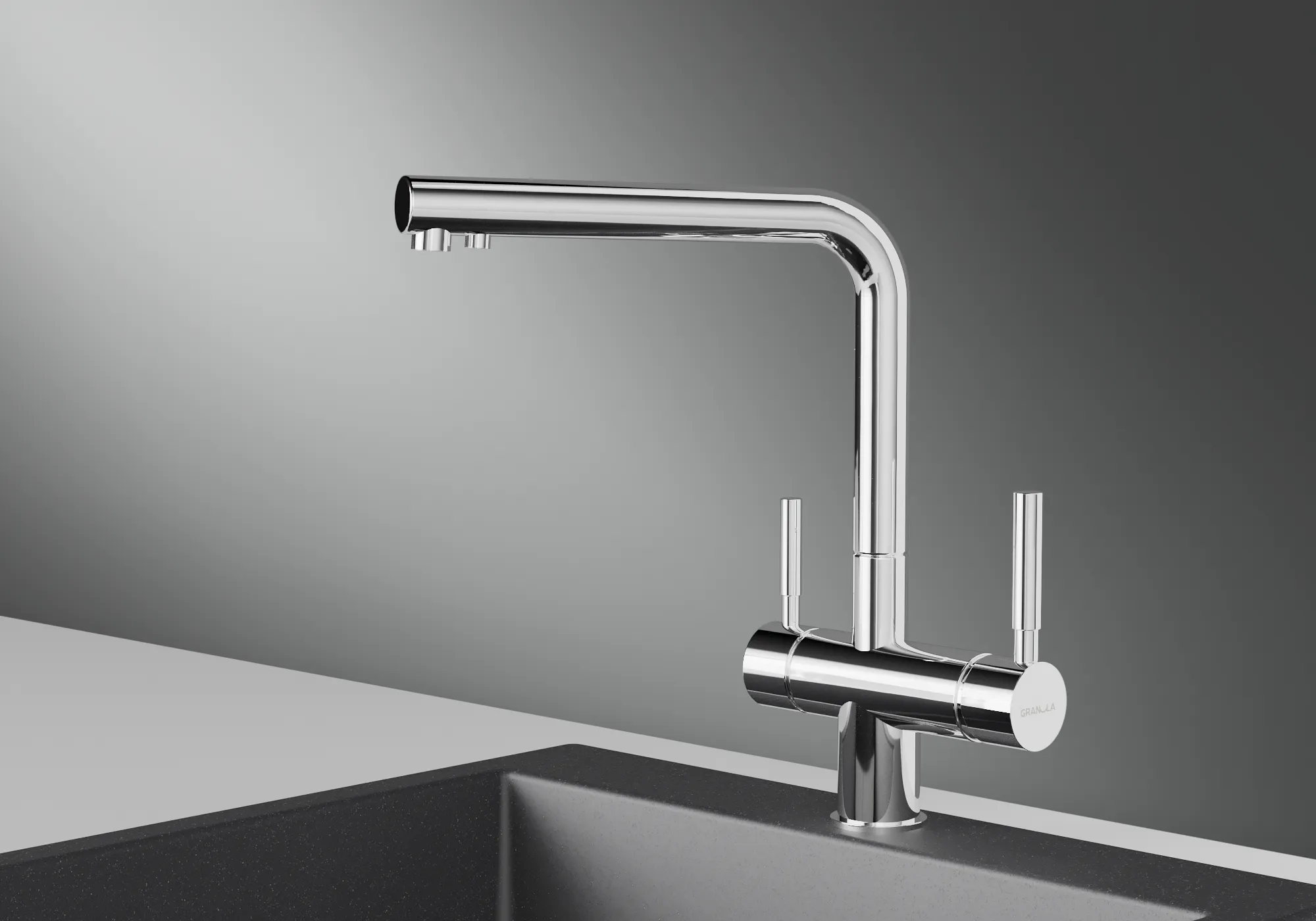 Смеситель для кухонной мойки Granula 2305 изготовлен из высококачественного материала. Корпус из нержавеющей стали обеспечивает длительный срок службы. При этом высокий излив позволяет мыть как мелкую, так и крупногабаритную посуду. Двухрычажная модель смесителя Granula 2305 выполнена с краном для питьевой воды. Фильтрованная вода подается по отдельной трубке и не смешивается с водопроводной водой. Покупателям предлагаются различные типы смесителей, окрашенные в тон моек Granula и StandART. Все модели смесителей для кухонных моек во всех цветах Вы можете посмотреть и приобрести на нашем сайте или в наших представительствах в регионах.Если у Вас остались вопросы, обращайтесь к нашим консультантам.