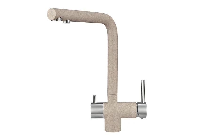 Смеситель для кухонной мойки Granula 2305 изготовлен из высококачественного материала. Корпус из нержавеющей стали обеспечивает длительный срок службы. При этом высокий излив позволяет мыть как мелкую, так и крупногабаритную посуду. Двухрычажная модель смесителя Granula 2305 выполнена с краном для питьевой воды. Фильтрованная вода подается по отдельной трубке и не смешивается с водопроводной водой. Покупателям предлагаются различные типы смесителей, окрашенные в тон моек Granula и StandART. Все модели смесителей для кухонных моек во всех цветах Вы можете посмотреть и приобрести на нашем сайте или в наших представительствах в регионах.Если у Вас остались вопросы, обращайтесь к нашим консультантам.