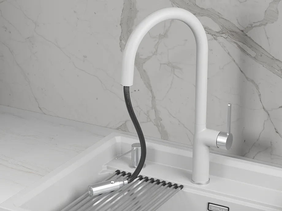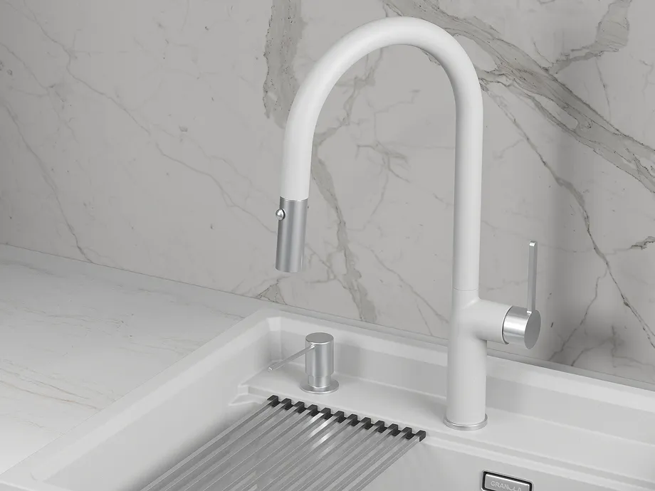 GR-8173, АРКТИК (БЕЛЫЙ), СМЕСИТЕЛЬ КУХОННЫЙ С ВЫДВИЖНЫМ ИЗЛИВОМ
