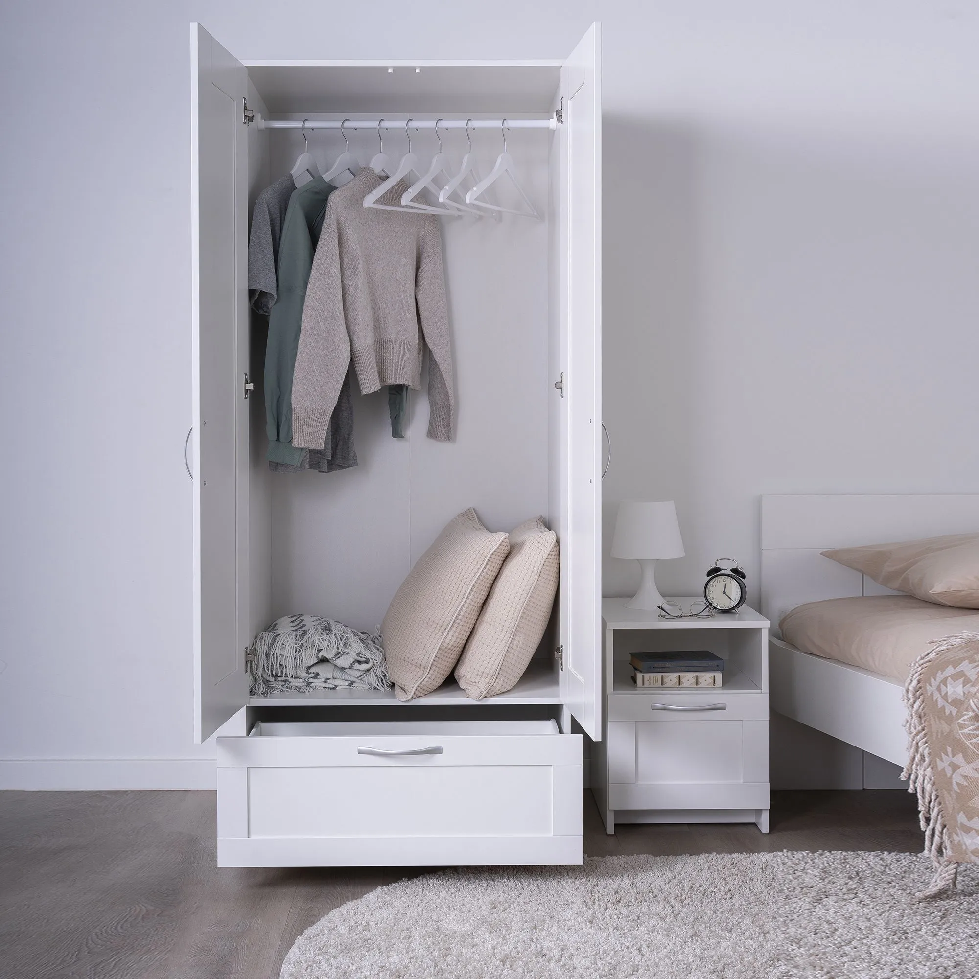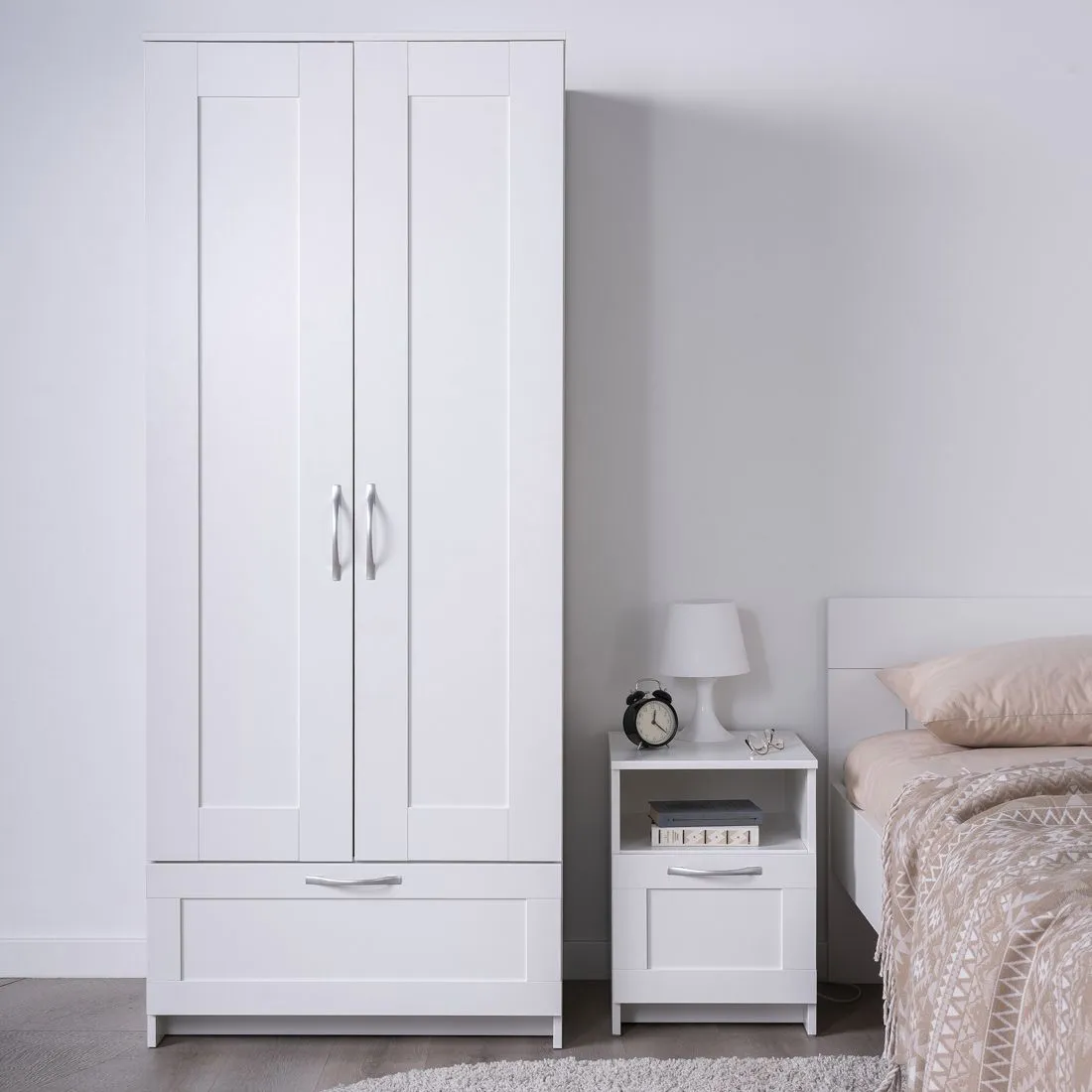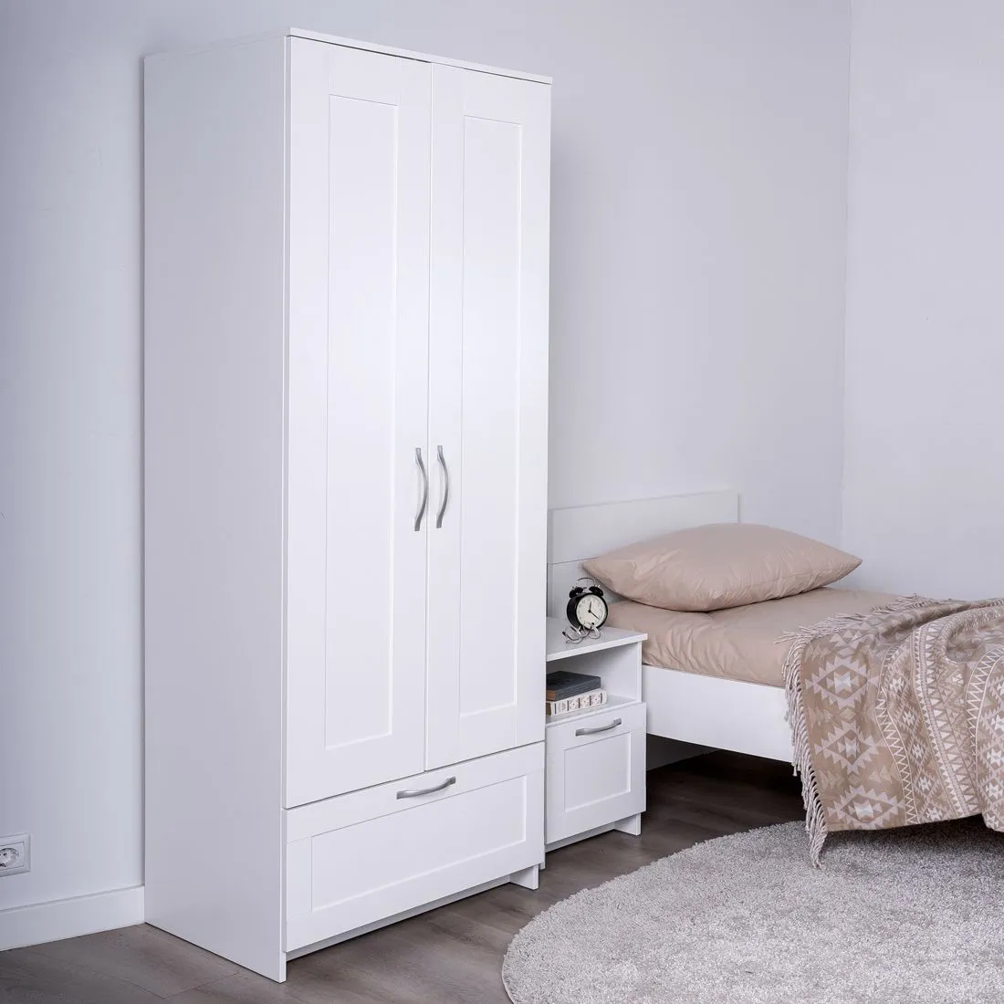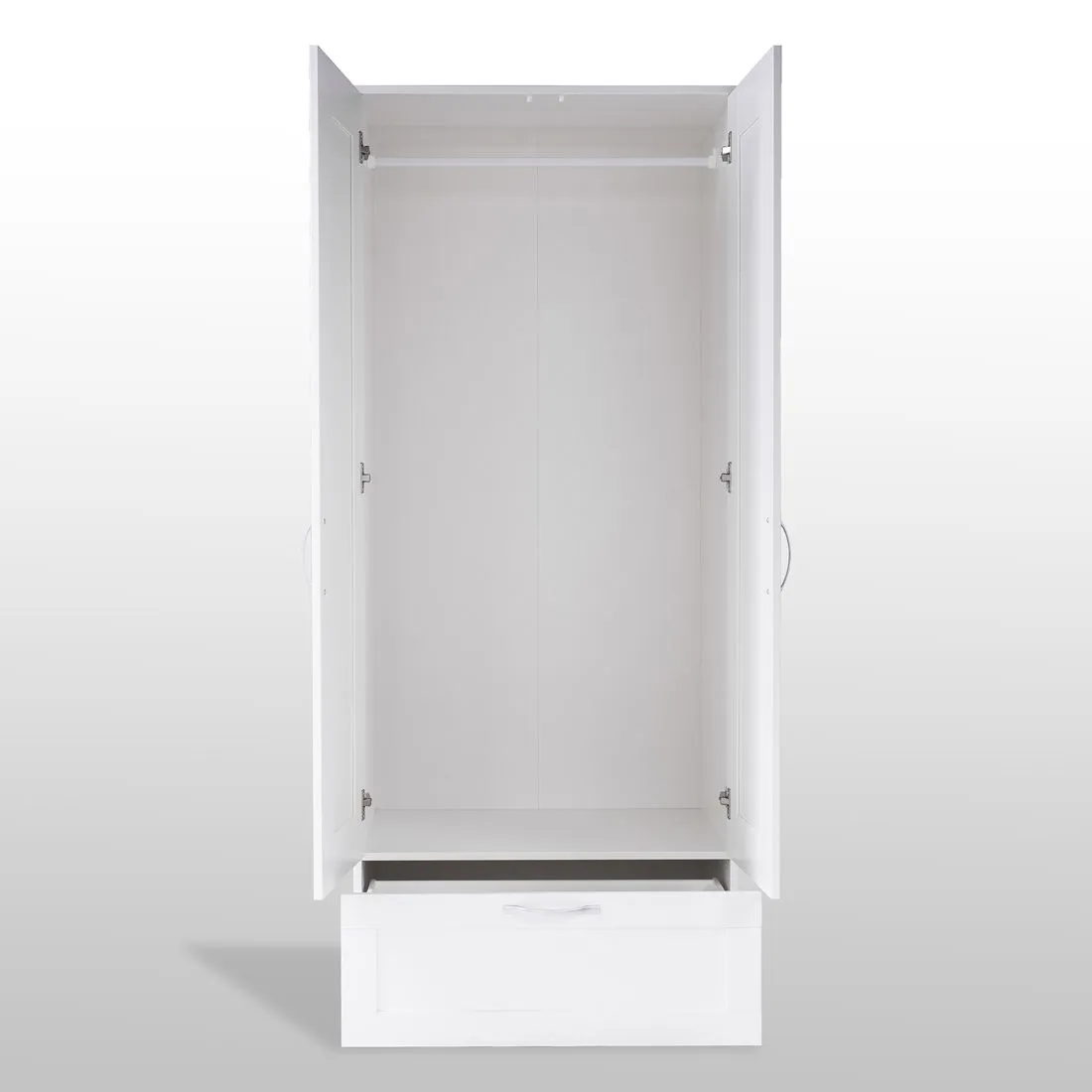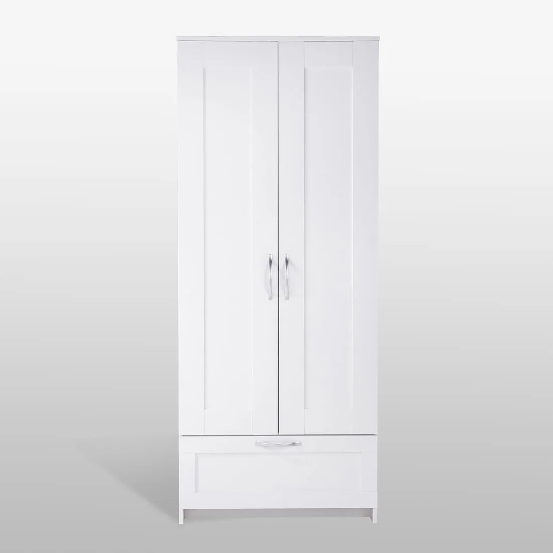 Шкаф СИРИУС для одежды двухдверный, с выдвижным ящиком, 782х502х1900, цвет Белый. Изготовлен из кашированного ДСП толщиной 16 мм. Крепится к стене. Гарантийный срок для жилых помещений 24 месяца, для общественных помещений - 18 месяцев.