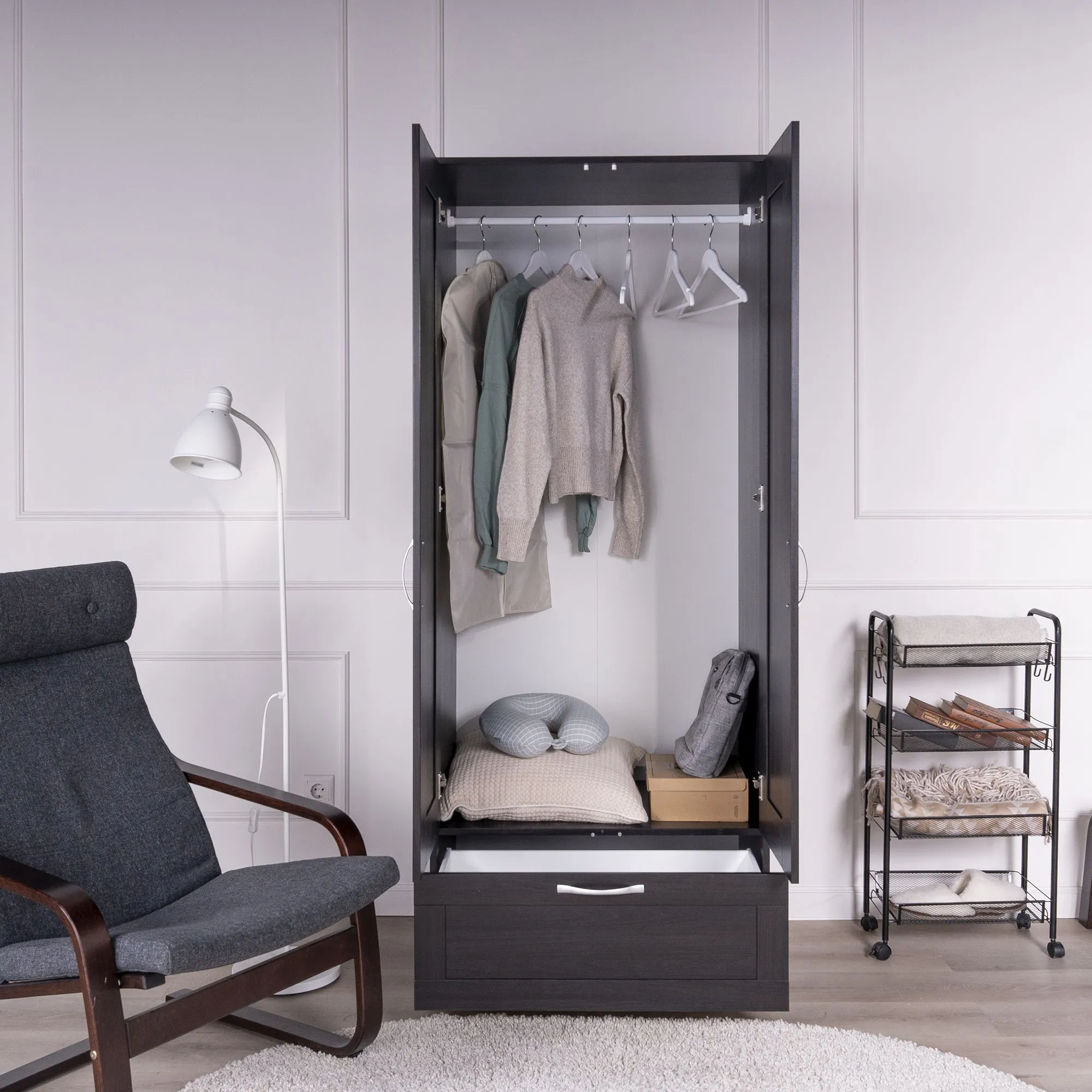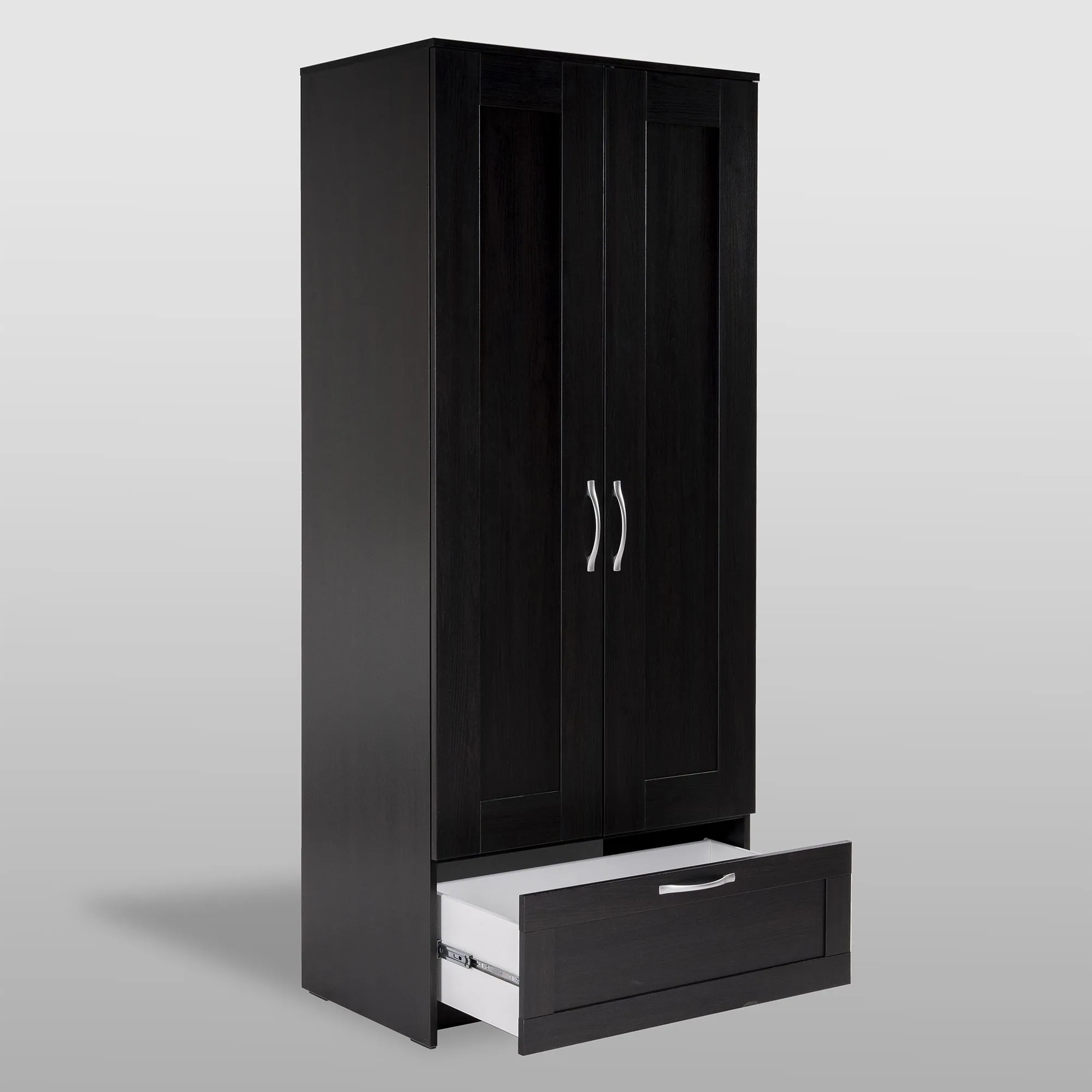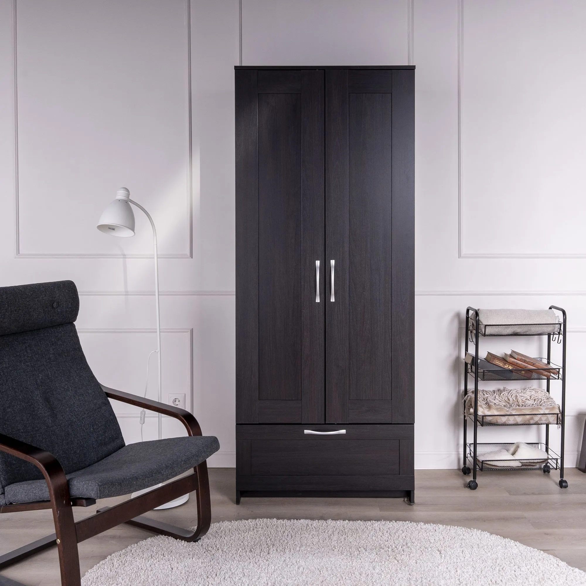 Шкаф СИРИУС для одежды двухдверный, с выдвижным ящиком, 782х502х1900, цвет Дуб Венге. Изготовлен из кашированного ДСП толщиной 16 мм. Крепится к стене. Гарантийный срок для жилых помещений 24 месяца, для общественных помещений - 18 месяцев.