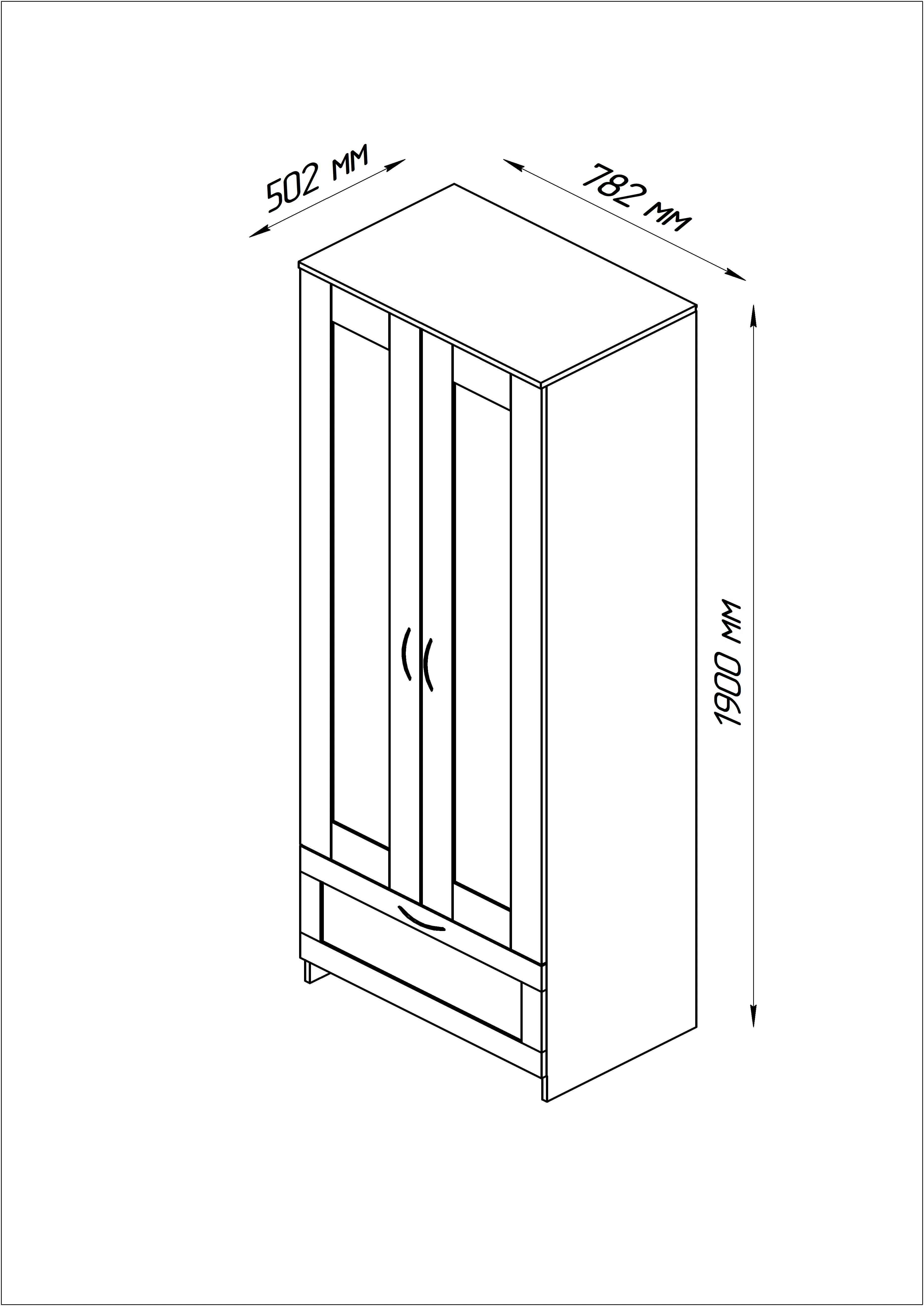 2.02.01.240.1 СИРИУС шкаф для одежды 2 двери и 1 ящик белый RU