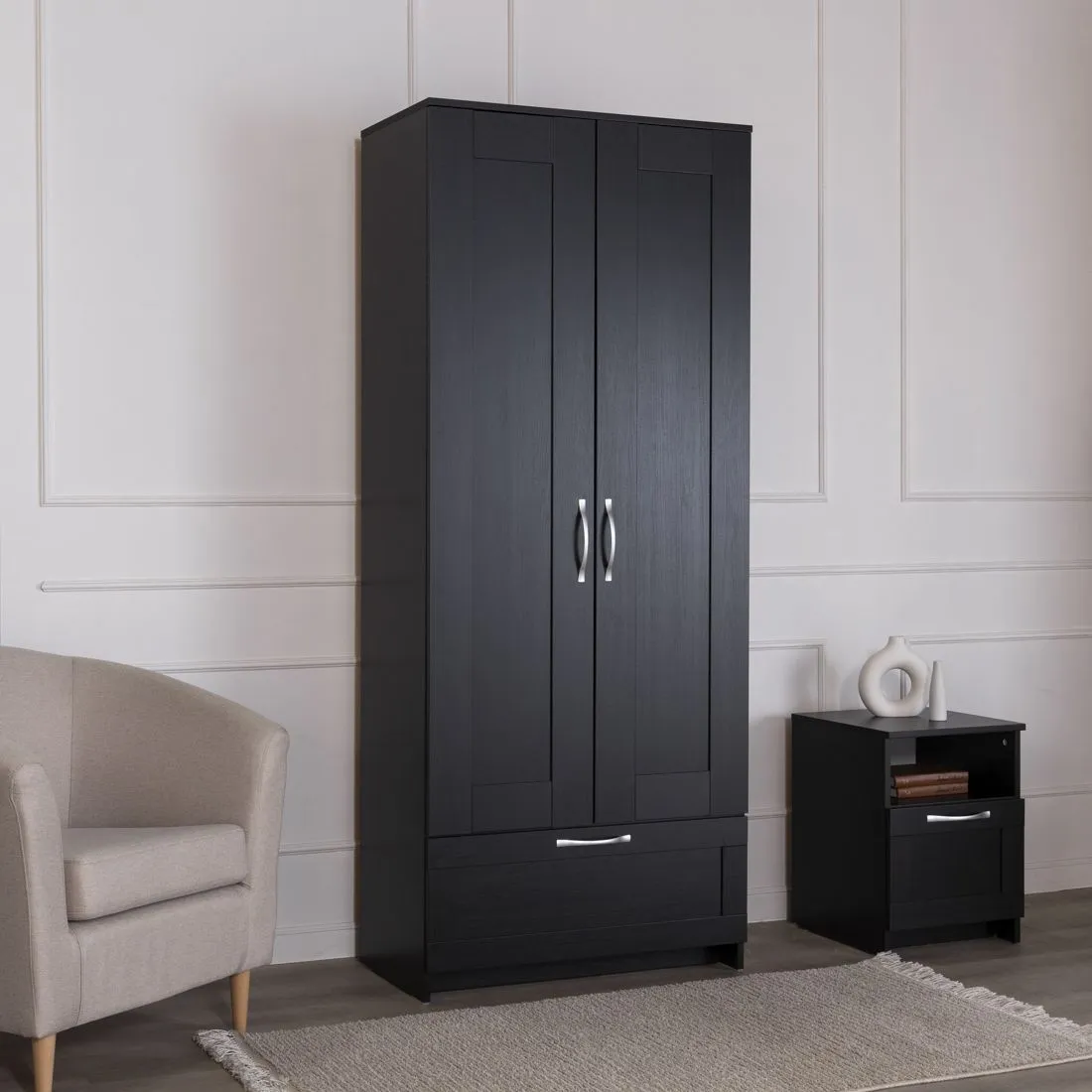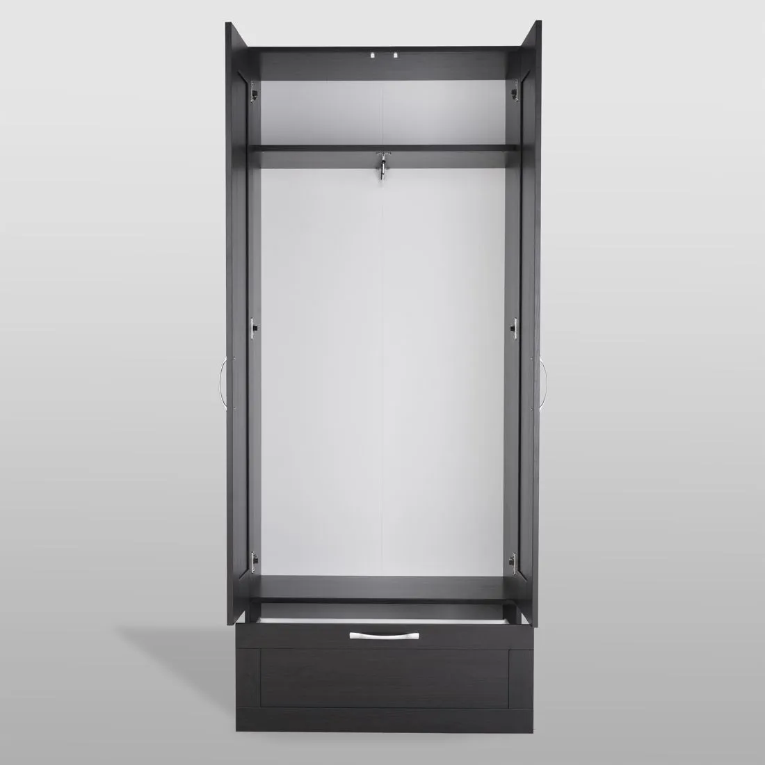 Шкаф СИРИУС для одежды двухдверный, с выдвижным ящиком, 782х412х1900, цвет Дуб Венге. Изготовлен из кашированного ДСП толщиной 16 мм. Крепится к стене. Гарантийный срок для жилых помещений 24 месяца, для общественных помещений - 18 месяцев.