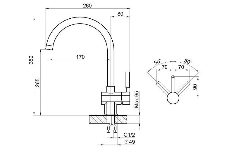Отверстие под смеситель, мм