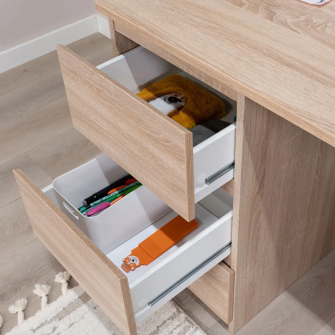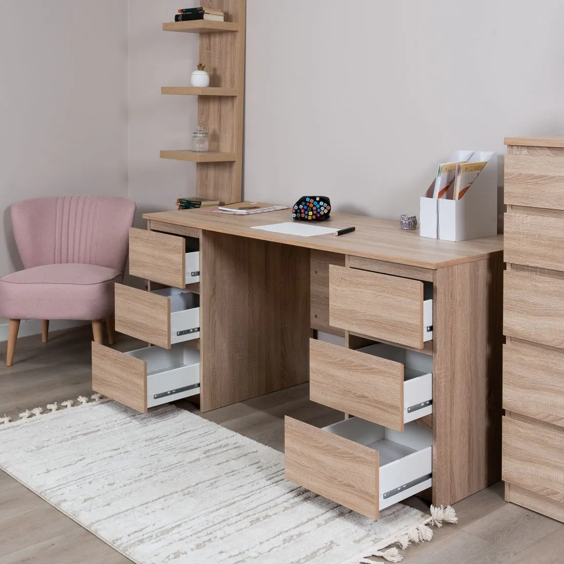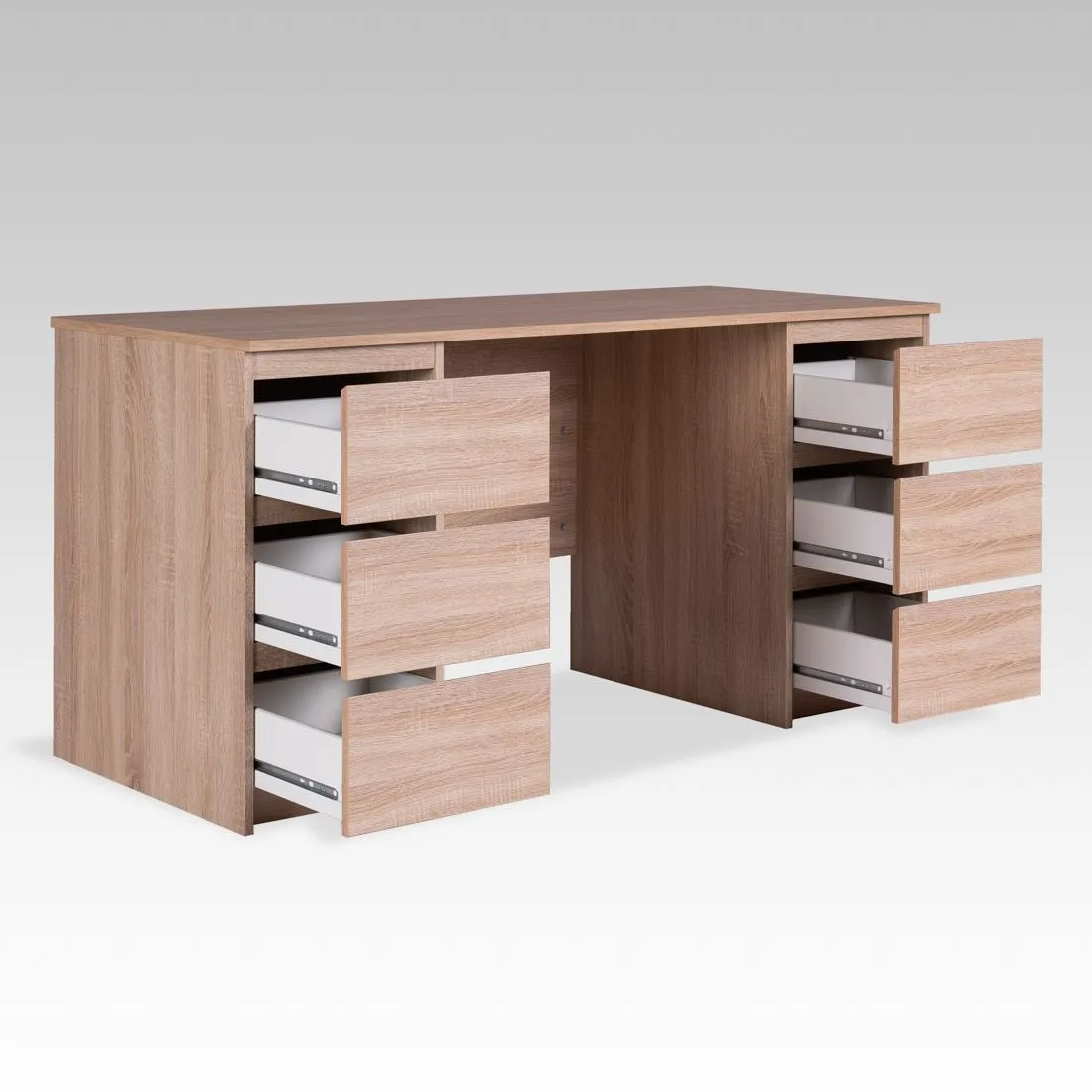 Стол письменный КАСТОР с двумя рядами наружных выдвижных ящиков, 1510х650х750, цвет Дуб Сонома. Изготовлен из кашированного ДСП толщиной  16 мм. Гарантийный срок для жилых помещений 24 месяца, для общественных помещений - 18 месяцев.